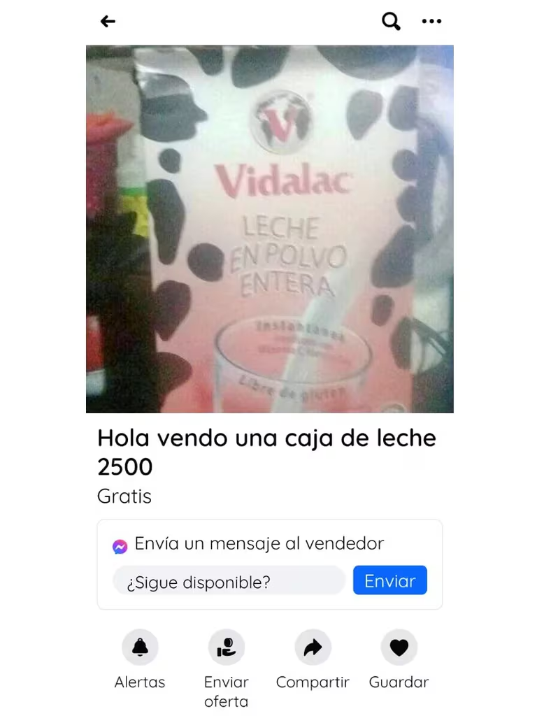 “Vimos estas ofertas por Marketplace (Facebook), de particulares vendiendo. Están distribuidos por todos lados distintos audios y capturas de pantalla de Facebook vendiendo una, dos, tres cajas de kilo”, dijo el director ejecutivo de Conin, Diego Álvarez. Y añadió: “Entristece, porque esa leche está destinada específicamente a los niños”.
