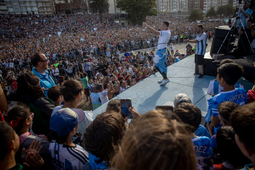El aquero argentino fue homenajeado por miles de vecinos y turistas que coparon desde temprano la zona del playón Las Toscas, entre el Torreón del Monje y el Hotel Provincial, donde se instaló el Arena Fest para seguir cada partido de Argentina durante el mundial.