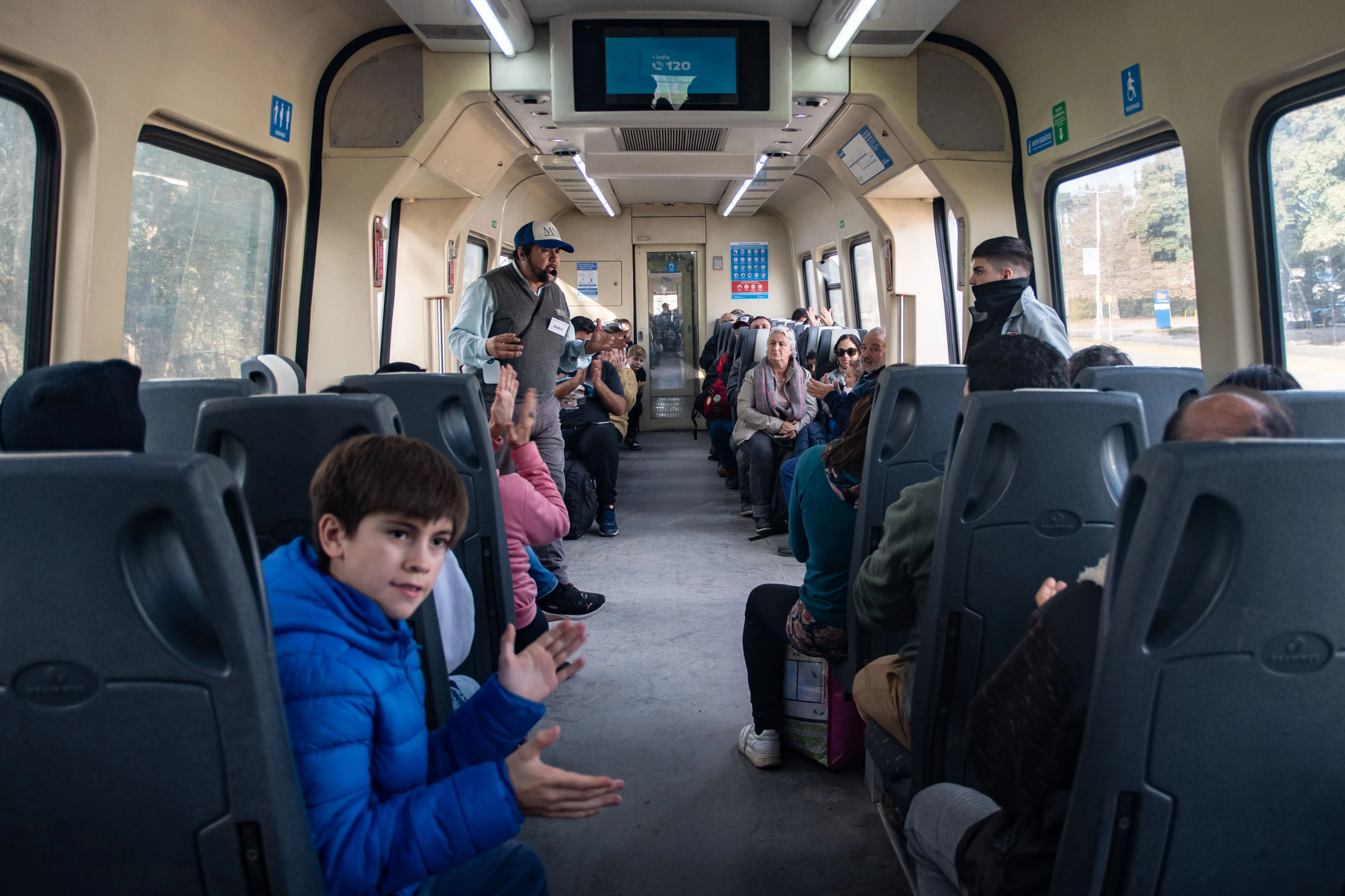 Mario Torres y Diego Sotelo, los dos «guardas» del tren, pertenecientes a Trenes Argentinos Capital Humano, uno de los organismos motores de esta realidad, reparten boletos gratuitos entre los pasajeros.