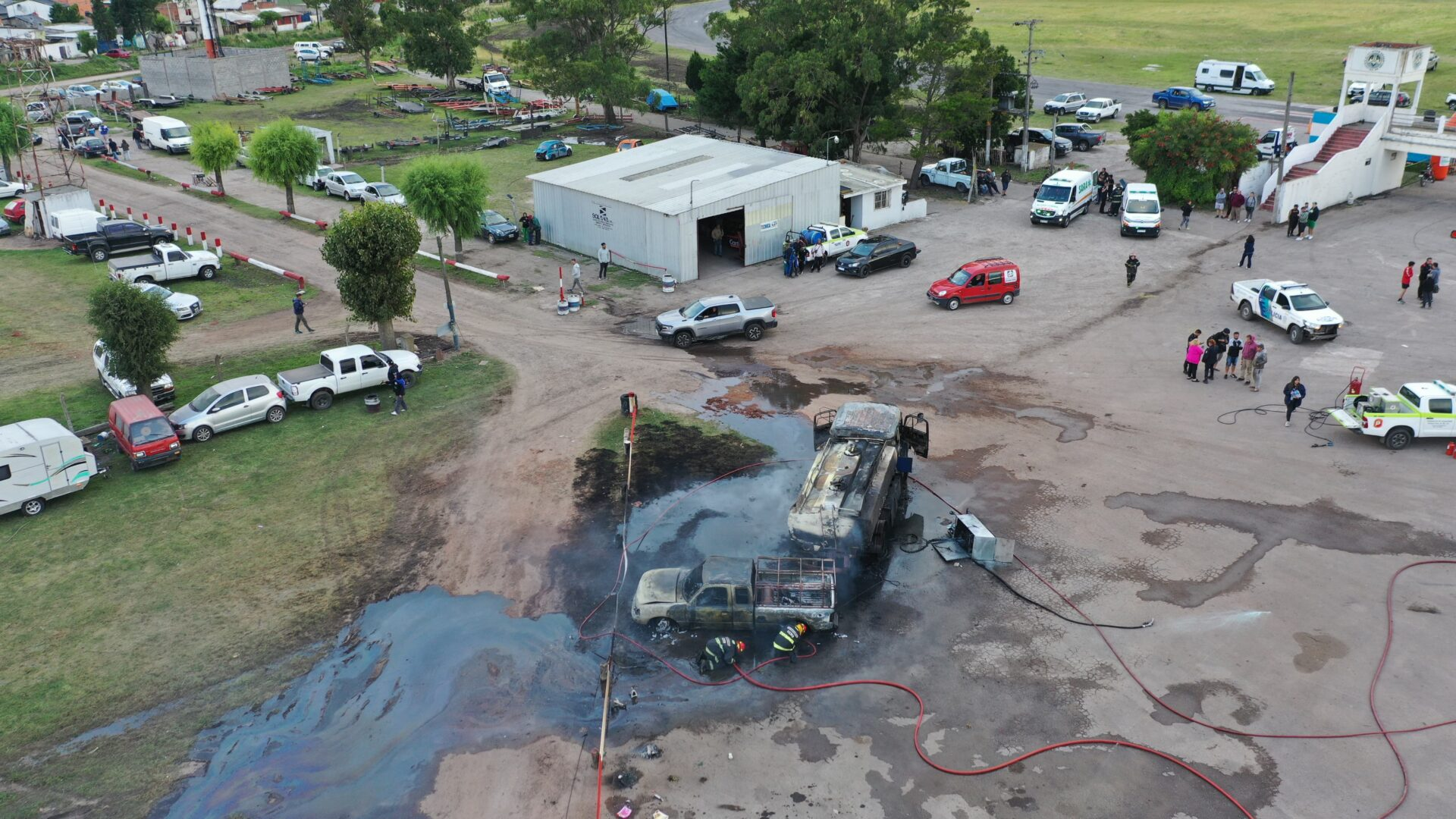 Por otra parte, se confirmó que para controlar el foco el ígneo se necesitó el apoyo de dos cuarteles y que el fuego se propagó hacia una camioneta que se encontraba en el lugar. Además, se detalló que personal de Prevención Ecológica para control de derrames se hizo presente en el lugar.