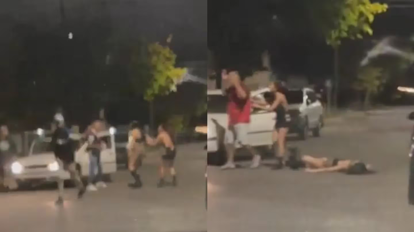 El hecho quedó registrado en un video que grabó otra persona que iba en un auto y frenó justo detrás de los agresores. En las imágenes que se volvieron virales se puede ver el fuerte golpe que recibe la joven y cómo cae desvanecida al piso.