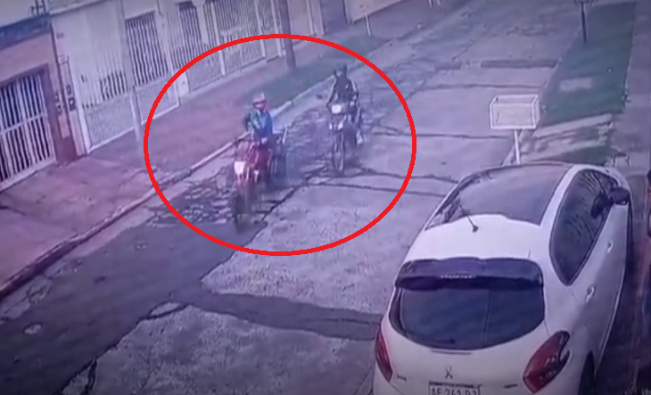 Los motochorros escaparon y se desconoce si alguno de los dos resultó herido, mientras que ella y su hijo resultaron sanos y salvos.