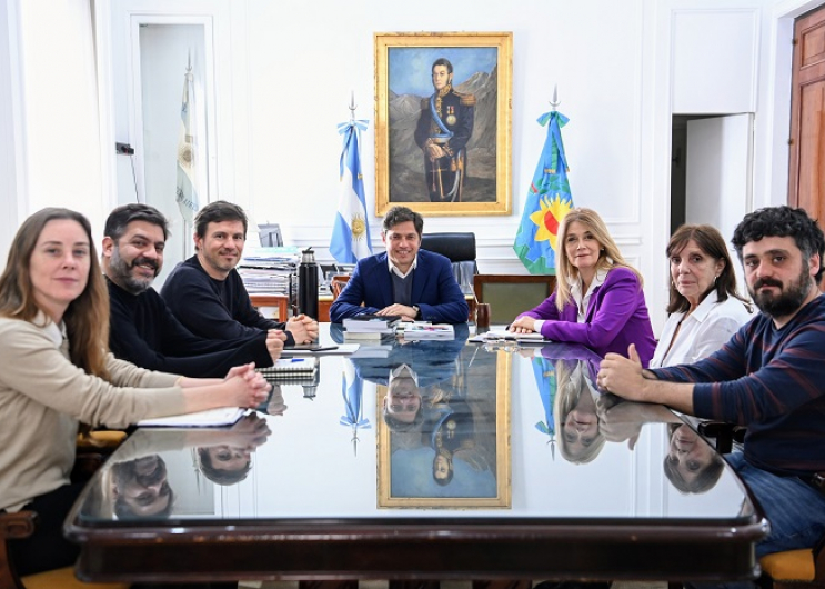 El gobernador de la provincia de Buenos Aires, Axel Kicillof, se reunió con la vicegobernadora y presidenta del Senado, Verónica Magario, la presidenta del bloque de senadores de Unión por la Patria, Teresa García, y el presidente del bloque de diputados, Facundo Tignanelli, para analizar el estado de situación del proyecto de inversión para la instalación de la planta productora de GNL por parte de las empresas YPF y Petronas.