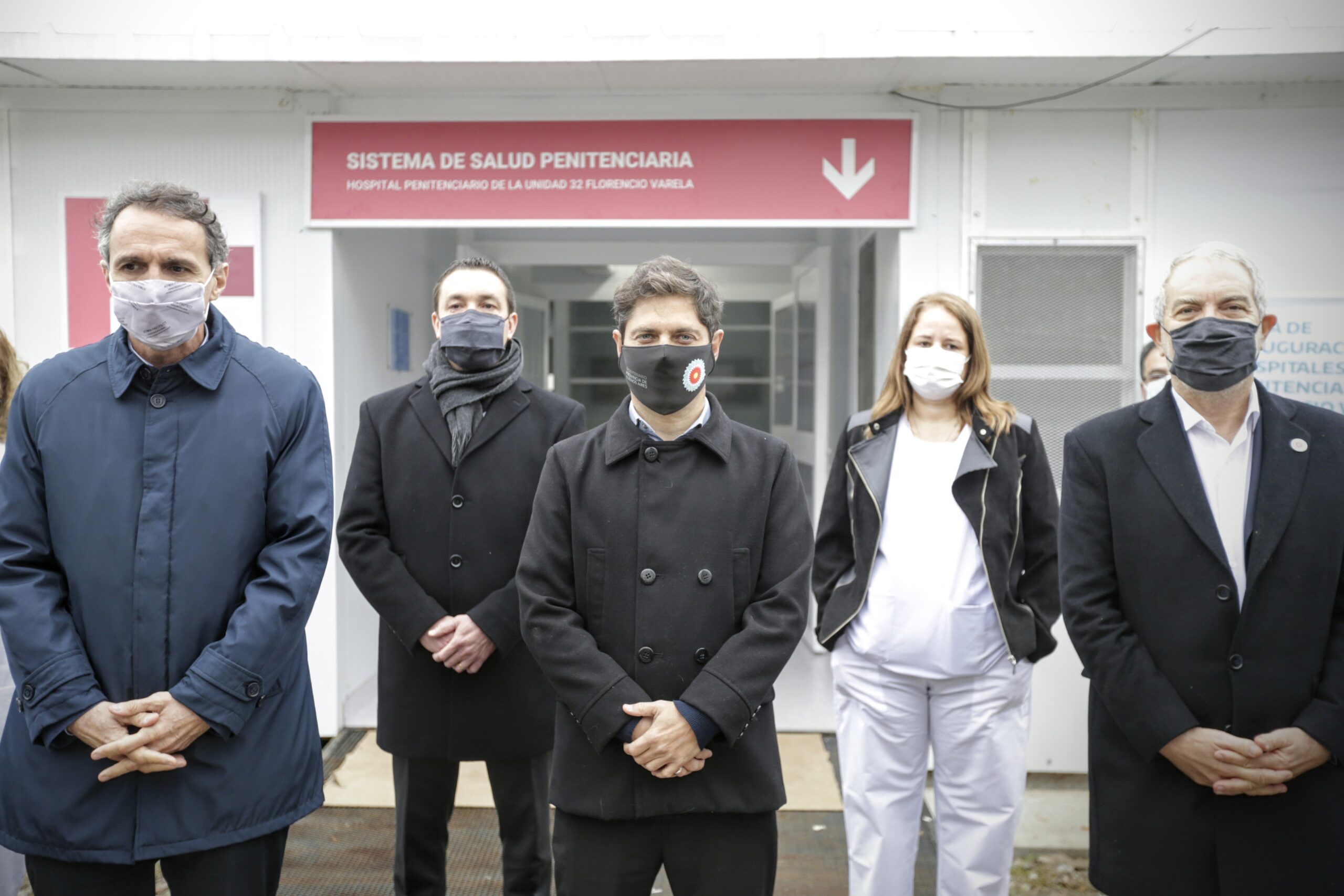 El gobernador Axel Kicillof visitó esta mañana el municipio de Florencio Varela, donde encabezó la inauguración de una nueva Alcaidía Departamental, dos hospitales penitenciarios modulares y un Centro de Aislamiento Sanitario (CAS), junto al ministro de Obras Públicas de la Nación, Gabriel Katopodis; el ministro bonaerense de Justicia y Derechos Humanos, Julio Alak; el intendente Andrés Watson; y la directora provincial de Coordinación de Alcaidías Departamentales, Paula Montero.