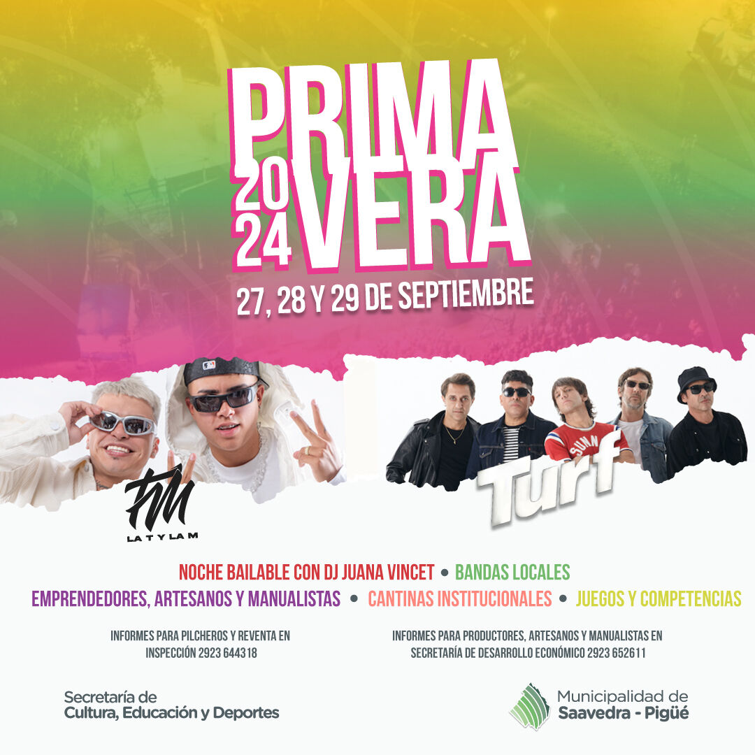 Pigüé tiene todo listo para vivir del 27 al 29 de septiembre, una nueva Fiesta de la Primavera en el Parque Municipal de la ciudad, un evento muy esperado que convoca a miles de jóvenes y familias locales y de la región.