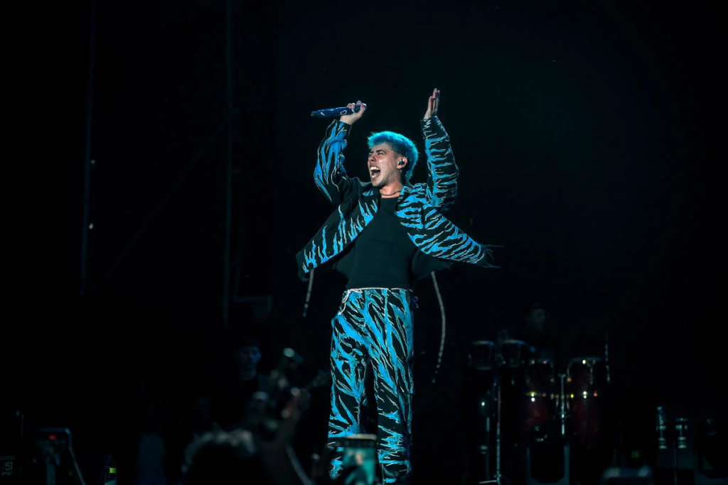 El joven que dio sus primeros pasos en los medios digitales como streamer y luego se hizo conocido por sus crossovers con artistas de los más variados géneros salió del escenario por unos minutos y a su regreso siguió con más canciones y baile.
