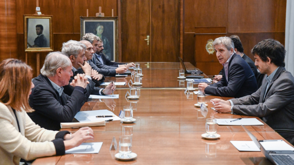 El ministro de Economía, Luis Caputo, mantuvo un encuentro este martes en el Palacio de Hacienda con representantes de supermercados para intercambiar propuestas vinculadas al sector, dialogar sobre la evolución de la macroeconomía y sobre las medidas del Gobierno Nacional para bajar la inflación.