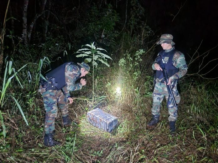Como resultado de los continuos patrullajes terrestres realizados por la fuerza federal para prevenir el delito, efectivos de la Prefectura de Puerto Maní, en su tarea de rastrillaje, divisaron un bulto sospechoso escondido en la maleza a la altura del kilómetro 1686,3 del Río Paraná, en las inmediaciones de Costa Polana.