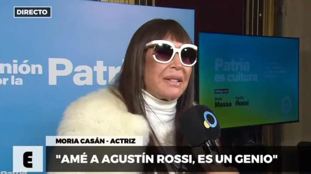 “Vengo a apoyar sobre todo a Sergio Massa que en este momento sería su suegrasa”, dijo entre risas en diálogo con la Televisión Pública. Moria definió al precandidato a presidente como “un hombre brillante que en este momento es el más elevado de todos”. Además resaltó sus cualidades “como padre, como hijo, como marido y ahora como yerno que es un amor, un hombre de grandes valores, muy amante de su país”.