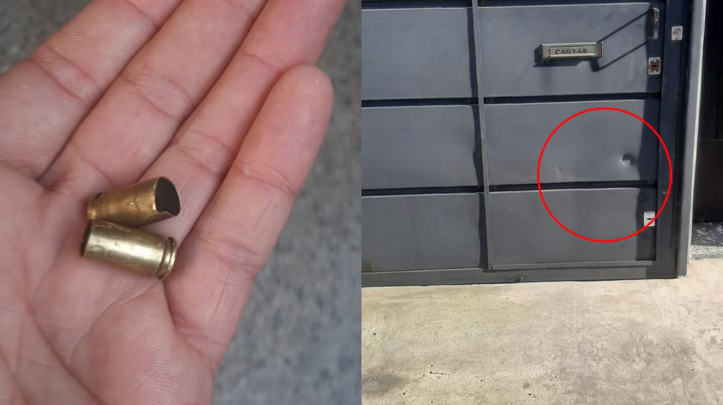 Así quedó el portón de una casa tras el tiroteo en Lanús.