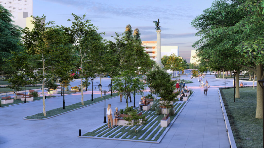 Con un plazo de ejecución de 5 meses, la intervención busca devolverle el valor original a la plaza, recuperando su trazado histórico. Contempla reemplazar el solado actual por baldosas graníticas para generar una continuación visual con el eje central, en el que se crearán ramblas verdes con árboles; reacondicionar los sectores verdes, con el arreglo y la pintura de los canteros; y reparquizar las zonas con poca vegetación.