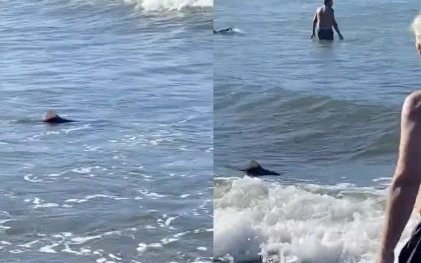 Este martes un tiburón irrumpió en una playa céntrica de Mar del Plata y sorprendió a los turistas que disfrutaban de las olas. La gran mayoría se asustó, aunque hubo quienes se tomaron el tiempo de captar el momento con una cámara.