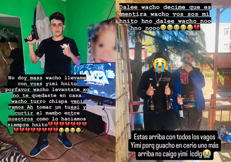 “No doy más, wacho, llevame con vos Yimi, hermanito. Por favor wacho, levantate, ¿por qué no te quedaste en casa? Wacho turro, chispa, vení, vamos a tomar tussi y a curtir el mambo entre nosotros como lo hacíamos siempre”, dice uno de los posteos