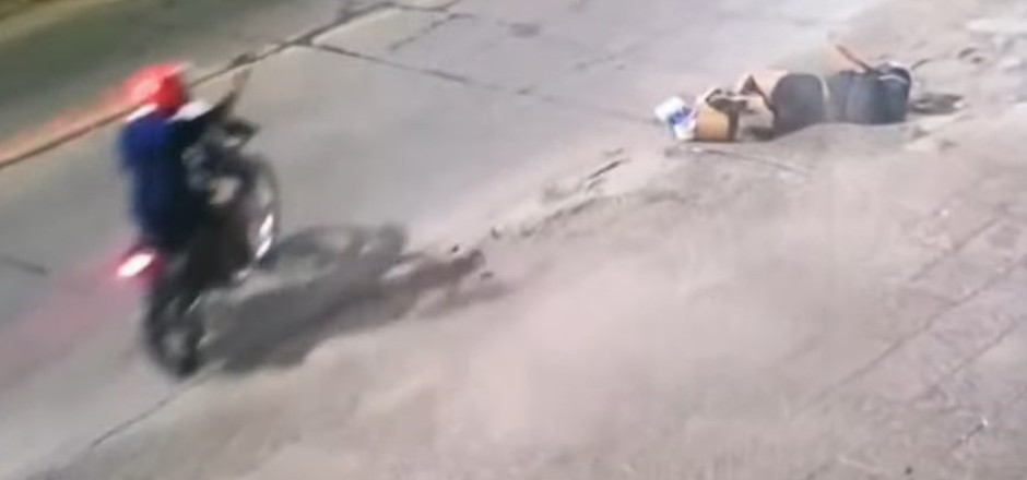 Ocurrió en la intersección de Venezuela y Alicante, en San Justo, y la secuencia fue captada por cámaras de seguridad. Los delincuentes gatillaron tres veces y la víctima dejó su rodado en el suelo para volver a buscar a su acompañante, que cayó en una maniobra para intentar escapar.